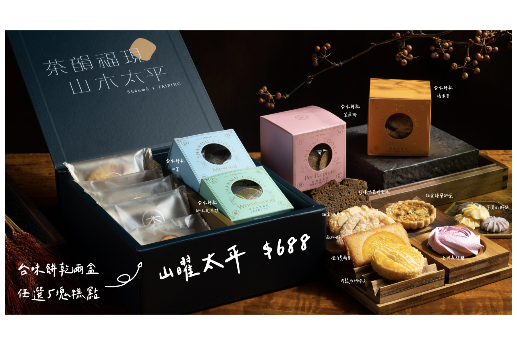 ✦山林之歌(洛神馬林糖、橙片費南雪、珍奶磅蛋糕、森林酥、肉鬆布列塔尼)